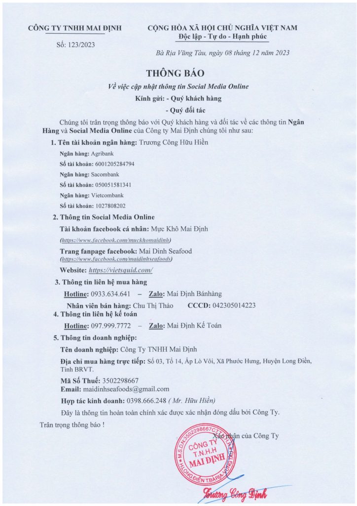 Trang chủ » Hoạt động thương hiệu » THÔNG BÁO QUY TRÌNH BÁN HÀNG – CÔNG TY TNHH HẢI SẢN MAI ĐỊNHTHÔNG BÁO QUY TRÌNH BÁN HÀNG – CÔNG TY TNHH HẢI SẢN MAI ĐỊNH Posted on 09/04/202509/04/2025 by Admin Hoạt động thương hiệu 544 lượt xem Posted on 09/04/202509/04/2025 by Admin Công Bố Thông Tin Ngân Hàng Và Social Media Online Chứng nhận vệ sinh an toàn thực phẩm Thương hiệu Công Ty THÔNG BÁO QUY TRÌNH BÁN HÀNG – CTY MAI ĐỊNH Có thể bạn quan tâm: Công Bố Thông Tin Ngân Hàng Và Social Media Online Chứng nhận vệ sinh an toàn thực phẩm Thương hiệu Công Ty