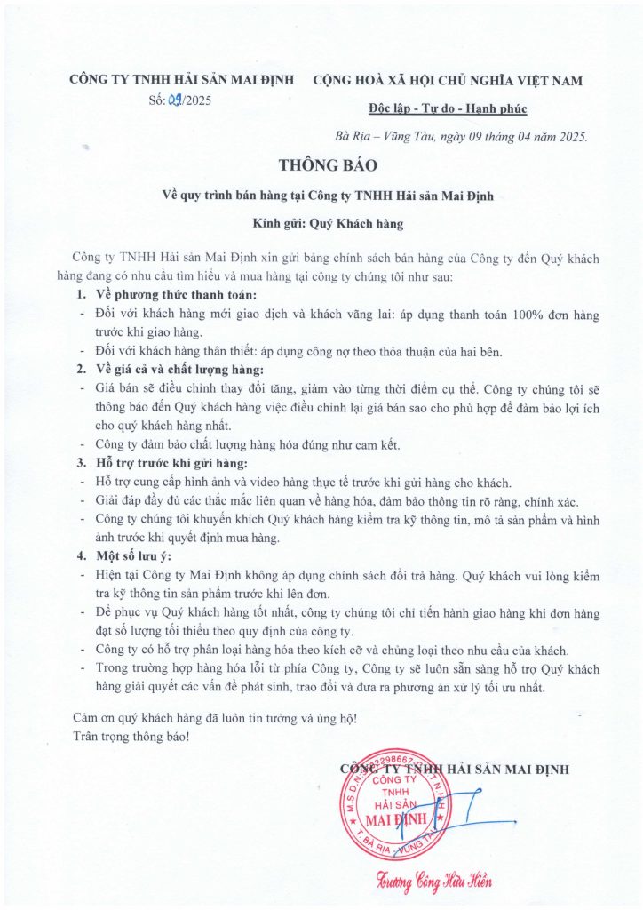 Trang chủ » Hoạt động thương hiệu » Chứng nhận vệ sinh an toàn thực phẩmChứng nhận vệ sinh an toàn thực phẩm Posted on 25/11/202214/12/2022 by Admin Hoạt động thương hiệu 489 lượt xem Posted on 25/11/202214/12/2022 by Admin THÔNG BÁO QUY TRÌNH BÁN HÀNG – CÔNG TY TNHH HẢI SẢN MAI ĐỊNH Công Bố Thông Tin Ngân Hàng Và Social Media Online Thương hiệu Công Ty Có thể bạn quan tâm: THÔNG BÁO QUY TRÌNH BÁN HÀNG – CÔNG TY TNHH HẢI SẢN MAI ĐỊNH Công Bố Thông Tin Ngân Hàng Và Social Media Online Thương hiệu Công Ty